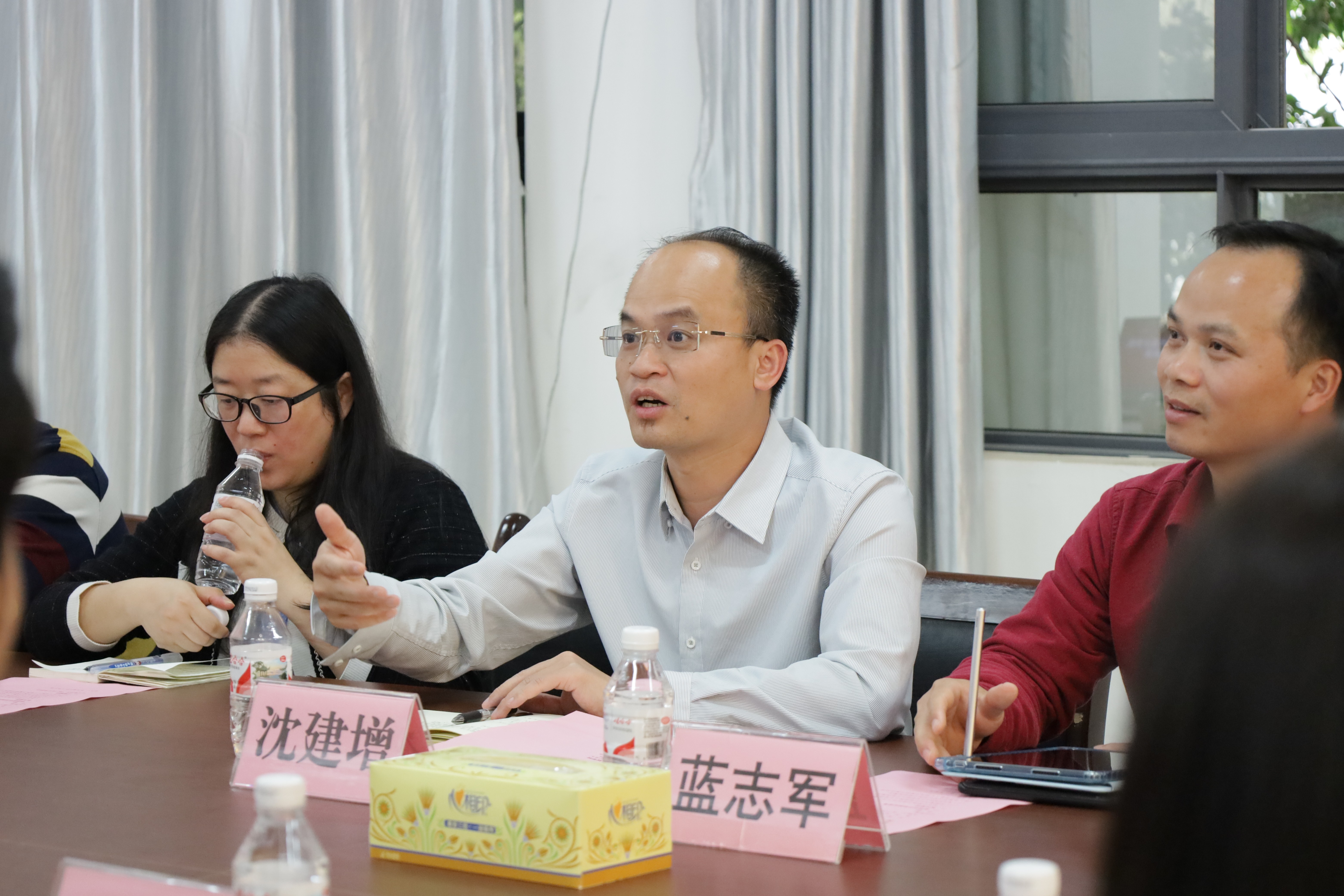 座谈会由南宁学院土木与建筑工程学院执行院长沈建增主持。座谈会开始,沈建增院长就土木与建筑学院发展、人才培养目标、师资队伍、办学条件、管理体制和校内外实训基地建设等方面的情况做了介绍,并分享了该学院在发展中积累的宝贵经验与发展规划。南宁学院艺术和设计学院副院长蓝志军详细介绍了环境设计专业建设、高素质师资队伍打造以及专业课程培养体系的构建等情况。