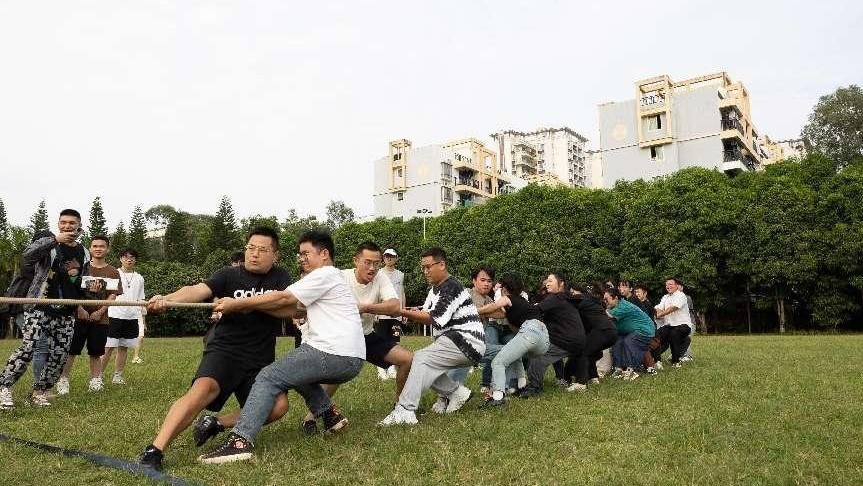 为倡导健康锻炼方式,丰富教职工业余生活,2023年10月27日,北海艺术设计学院于东校区操场组织开展第一届教职工拔河比赛。本次拔河比赛全校共有八个学院代表队参赛,比赛采取逐层淘汰和三局两胜的模式进行,美术学院参赛教师积极应战,心往一处想,劲往一处使,展现出青年教师的独特风采。在经过激烈的角逐后,美术学院最终获得教职工拔河比赛三等奖。(李伟民 摄)