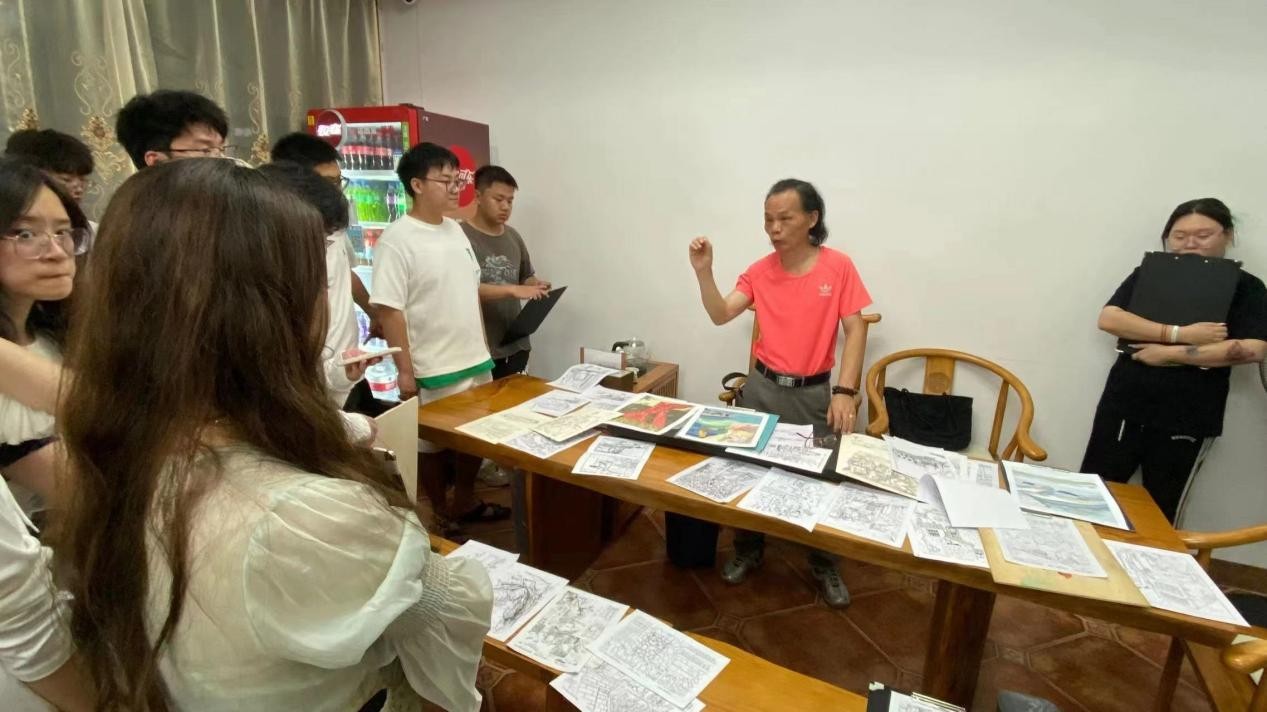 在老师们的带领下,同学们在实践过程中有序深入景区、村庄,通过观察走访体验感悟、实地踏勘拍摄记录、艺术采风绘画写生,结合课程所学知识,感受、观察、分析涠洲岛自然风貌与人文聚落,领悟地方性色彩、空间等元素的构成魅力,并以自身理解运用美术基础与设计表现技法绘出“设计色彩”图幅。过程中,老师们悉心指导,帮助同学们了解掌握取景、构图、取舍、表现。晚上,专任教师辅助指导,教授以班级为单位开展评图教学课堂。微弱灯光抵不住同学们对专业知识学习的偌大热情,每位同学积极听取指导教授的点评意见,努力提高自身的艺术涵养与表现技法。
