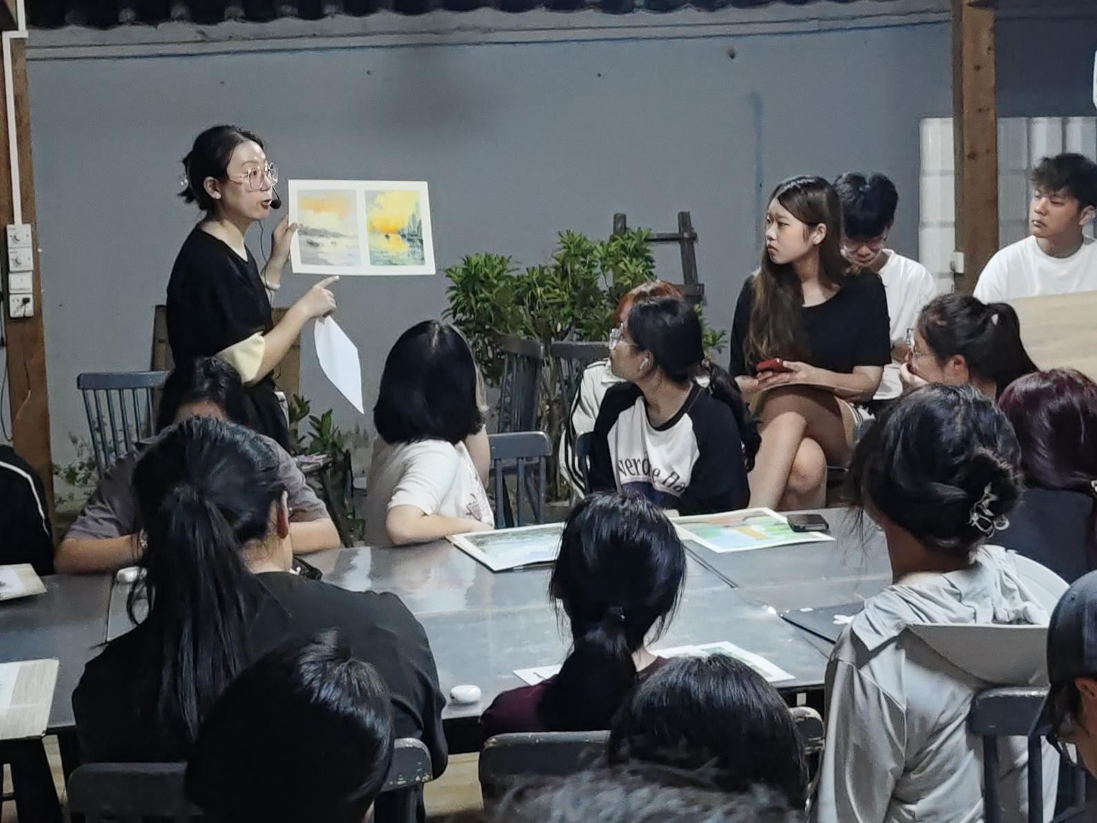 在接下来的几天里,同学们深入观察了涠洲岛的自然风光和人文环境,在老师的指导下,不仅掌握了取景构图、平涂设色和绘画表现技巧,还提高了审美水平。每天晚上,专任教师以班级为单位开展学生作业成果点评,总结作业的优缺点,提出改进的意见和方法。学生们在作业点评的过程中积极发言,分享自己的创作心得和体会,不但学会了从专业角度审视自己的作品,还学会了如何欣赏和评价他人的画作。此次涠洲岛综合实践活动不仅提升了学生的专业水平,还积累了丰富的实践经验,也成了他们求学道路上的一个重要里程碑。