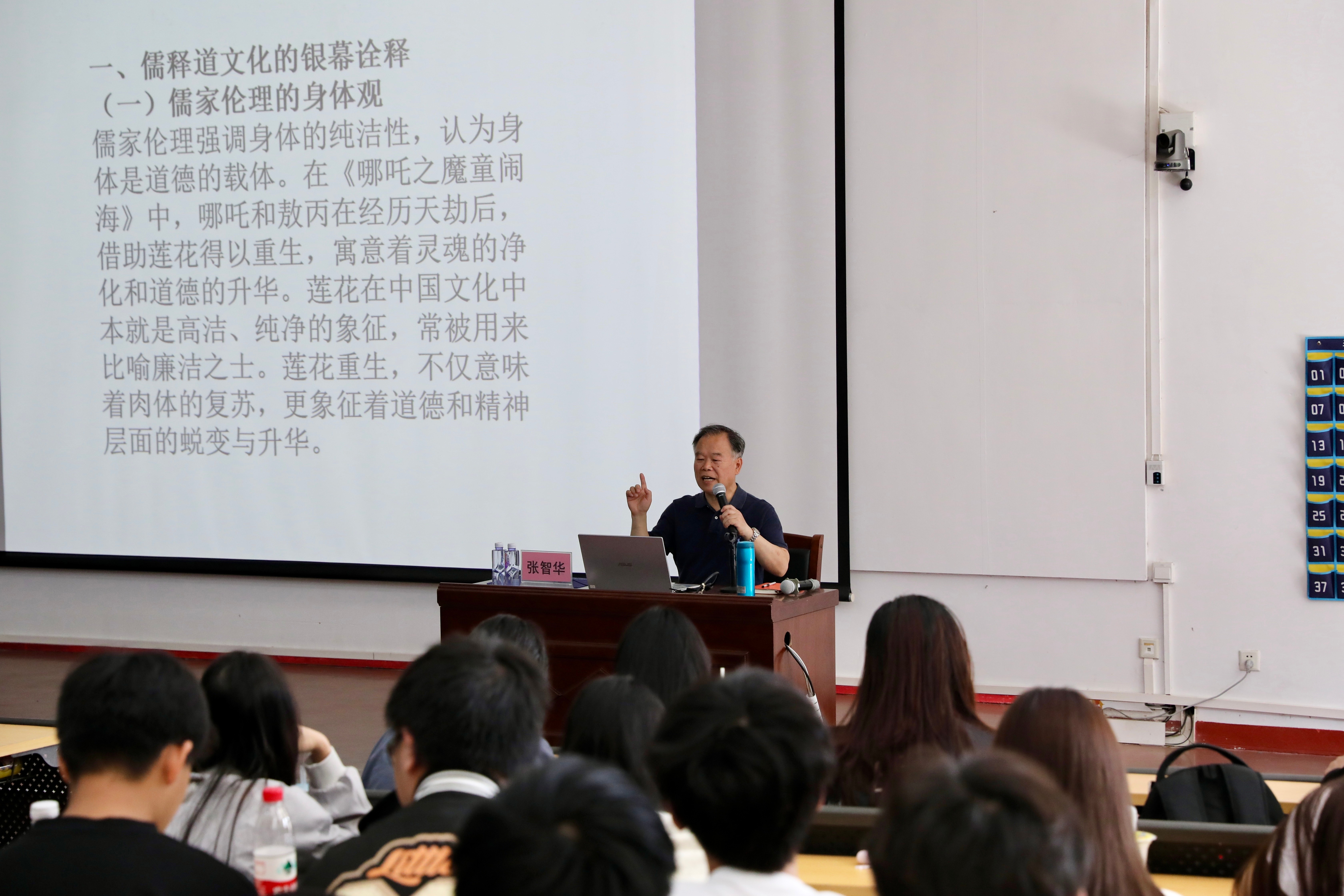 随着讲座的逐步深入,张智华教授对中国动画产业的发展现状及其未来前景进行了全面展望。他坦诚指出,目前中国动画产业在资金投入、制作技术等多个方面仍面临不少挑战,然而,中国动画工作者始终不渝地追求创意与创新。他鼓励在场的师生们要勇于担当责任,积极投身于动画创作与学术研究,深入挖掘传统文化的精髓,为中国动画产业的蓬勃发展贡献智慧与力量。