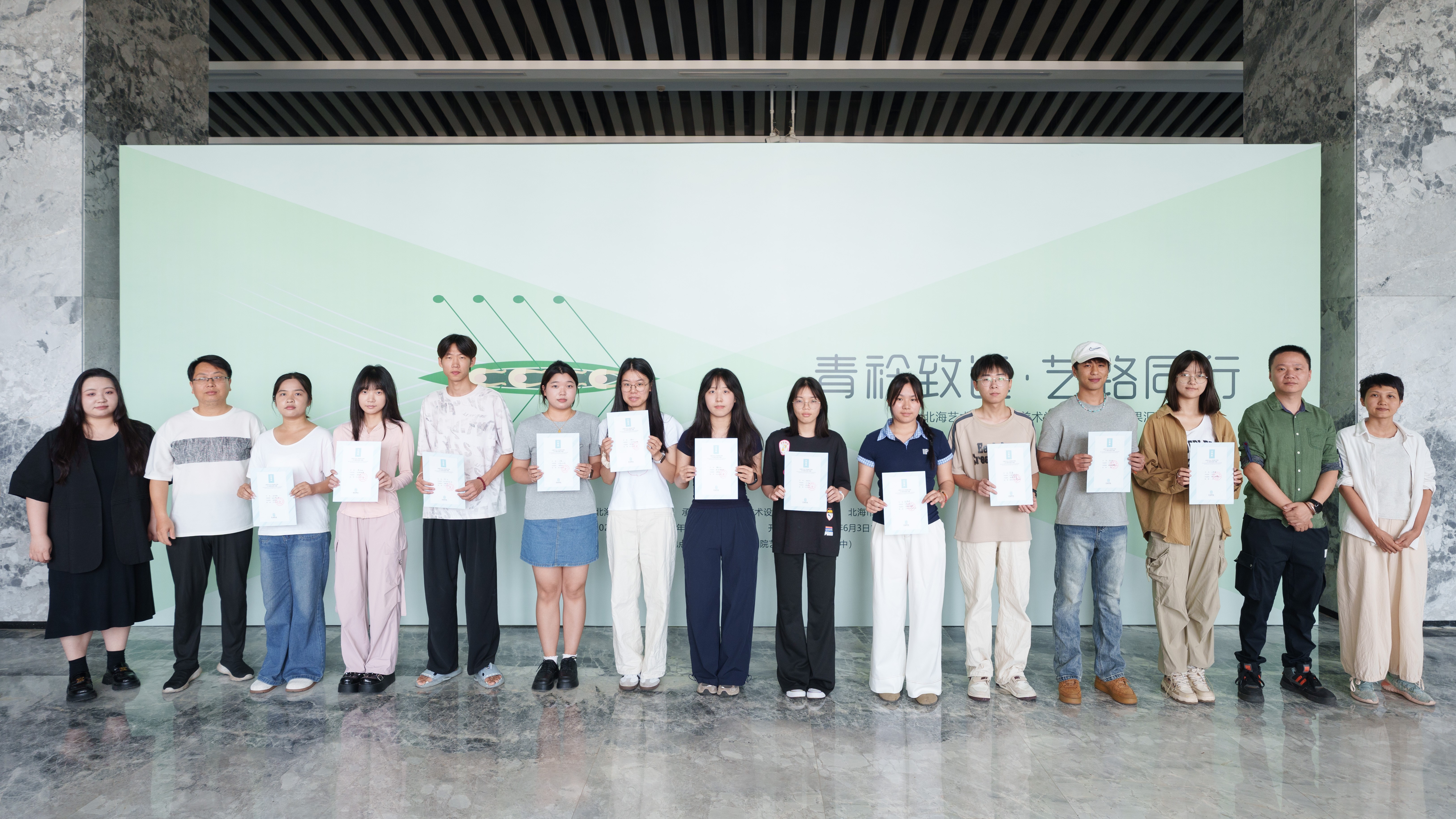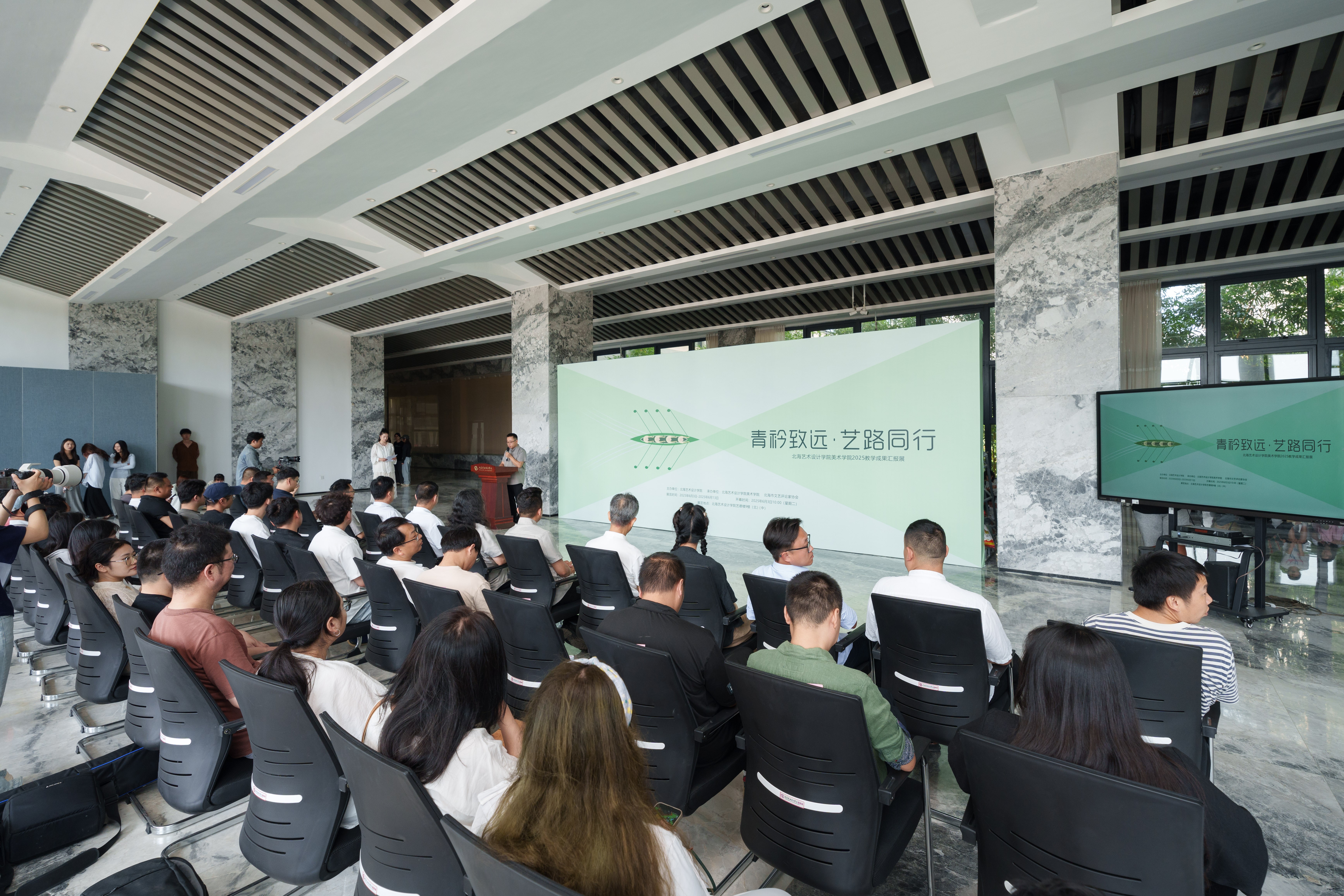 最后,由北海艺术设计学院党委书记覃宪儒,宣布“青衿致远艺路同行”教学成果汇报展开幕。