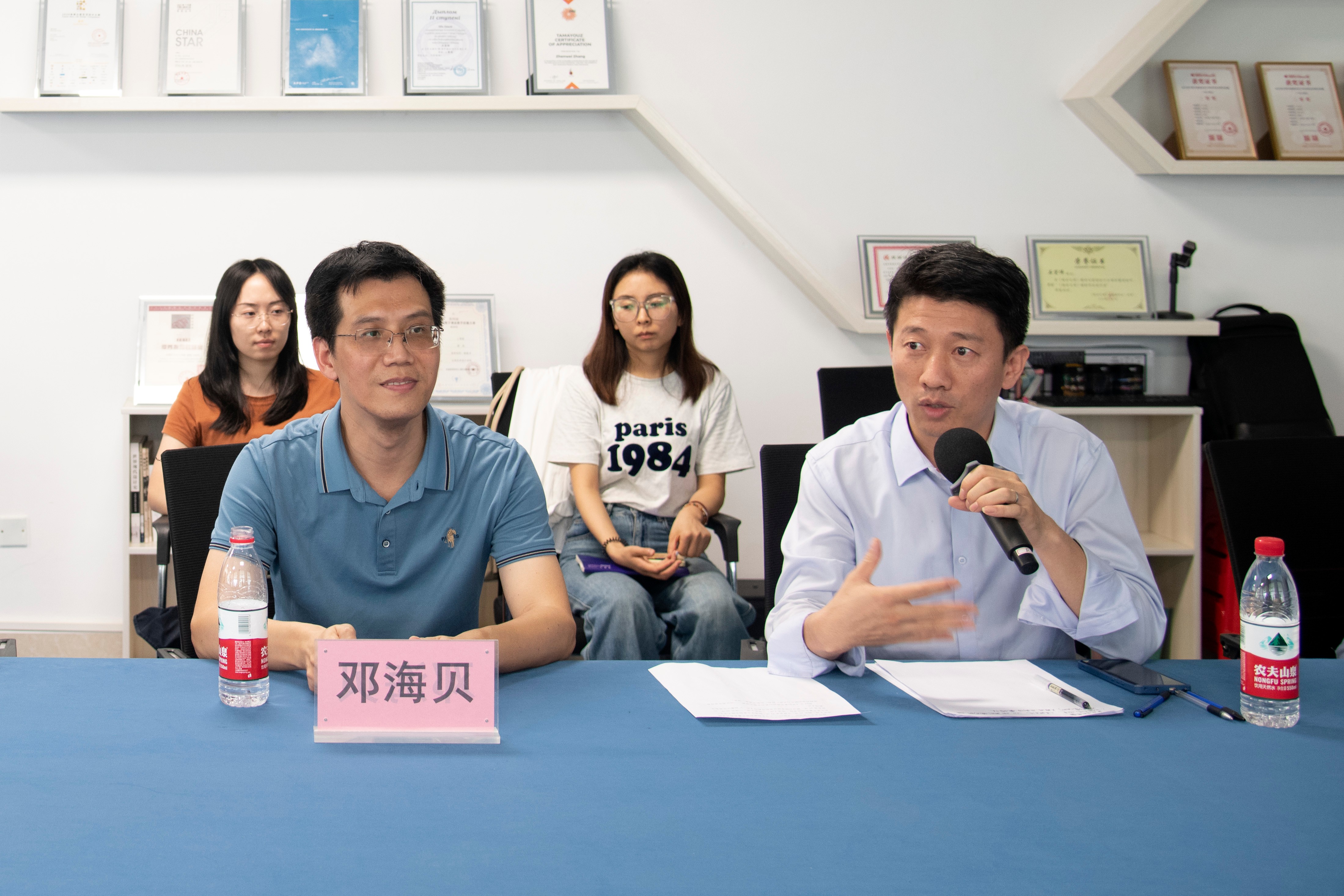 在互动环节,与会教师们纷纷发言,就如何更有针对性地指导学生参赛、如何在课程中融入比赛主题训练等问题与邓海贝副教授进行了深入交流。视觉传达教研室副主任郭梦楠提出了关于参赛学生年级特点和指导策略的问题,邓副教授给予了耐心解答。视觉传达设计专任教师王锦桥则分享了自己在课堂上将教学方法与比赛相结合的经验,引发了在场教师的共鸣和思考。