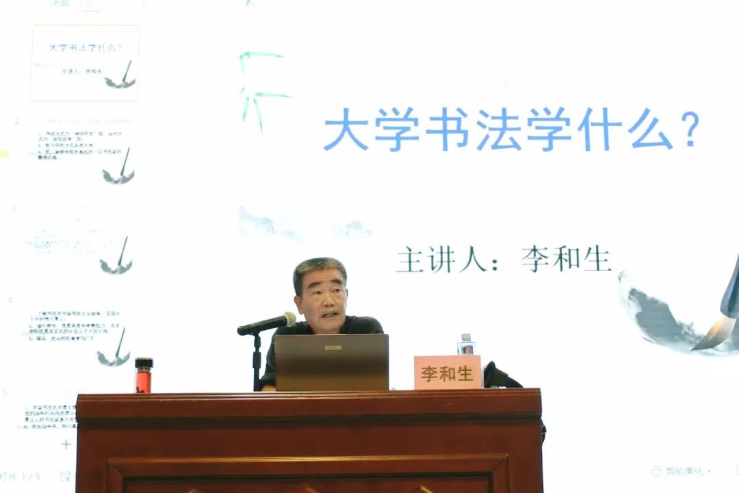 随后,李和生教授全面阐述了书法学习的多重价值与意义。他表示,书法作为中国传统文化的重要载体,承载着千年文化基因,学习书法必须以敬畏之心对待每一个汉字,切实承担起文化传承的责任。同时,他结合未来社会发展趋势指出,在科技高度发达的时代背景下,个人要想立足社会,需通过书法学习修心养性,提升艺术鉴赏能力与审美水平;强调书法学习不可急于求成,需秉持踏实专注的态度,兼顾理论学习与实践练习,实现知行合一。此外,李和生教授还结合自身从业经历,向学生介绍了书法专业广阔的就业前景,为学生未来职业发展提供参考。