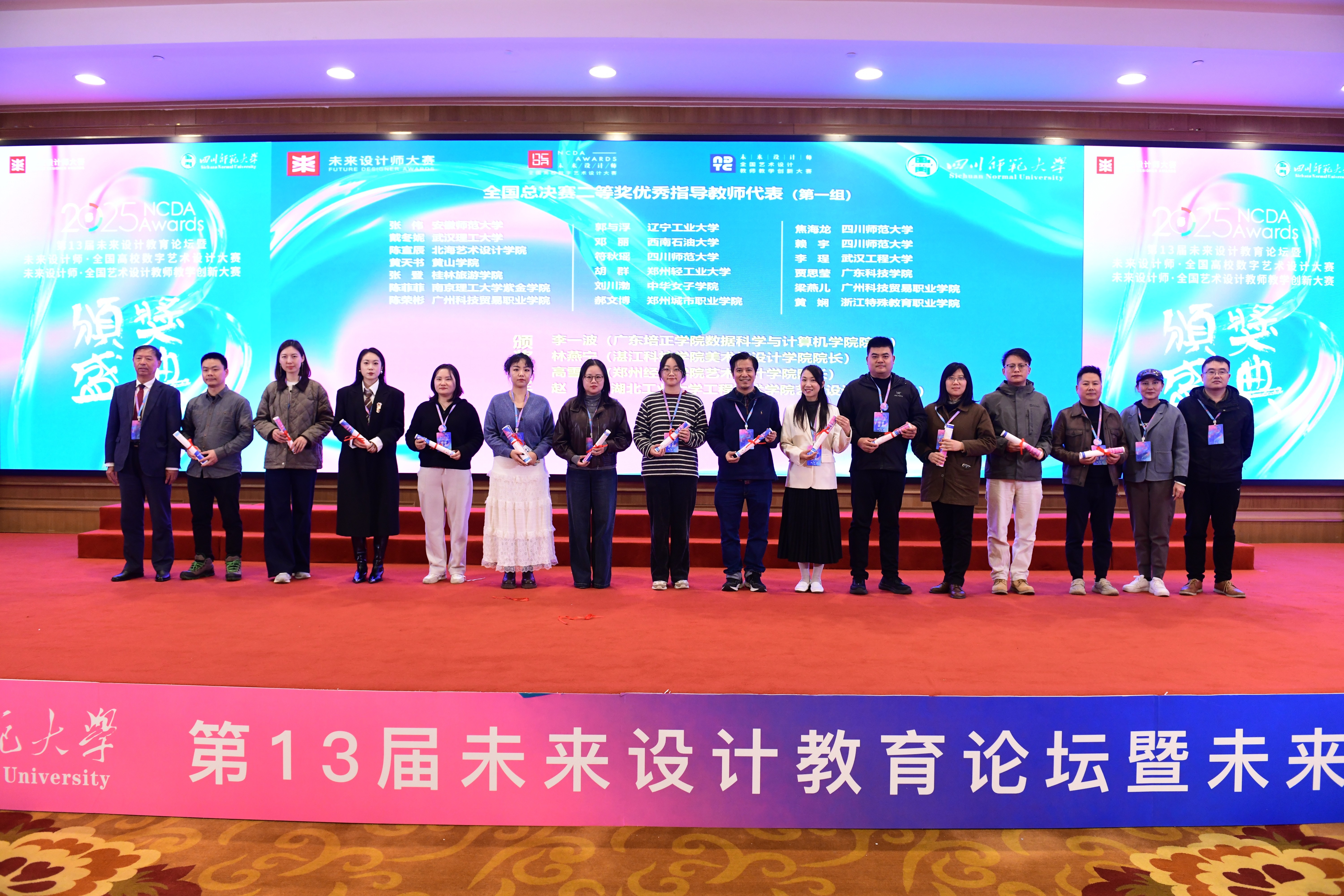 2025年11月23日,第十三届未来设计教育论坛暨未来设计师·全国高校数字艺术设计大赛(NCDA)颁奖典礼在成都隆重举行。本届大赛由未来设计师大赛组委会、四川师范大学、工业和信息化部人才交流中心、民政部智惠乡村志愿服务中心联合主办,是教育部中国高等教育学会认定的重要学科竞赛之一。大赛共吸引全国1893所高校参与,征集作品超过29万件,参赛人次突破150万,是国内设计教育领域具有广泛影响力的权威赛事。