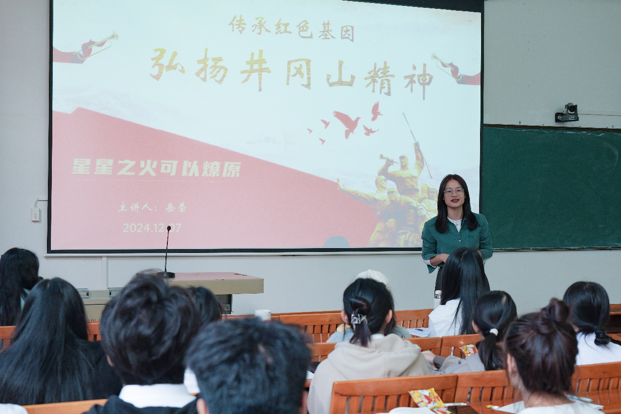 培训第四讲中,文学院党支部书记岳莹老师以《传承红色基因,学思践悟中国共产党人精神谱系》为主题,带领学员回顾井冈山精神发展历程,感受井冈山精神的深刻内涵,引导学员们传承党的优良传统和作风,增强面对挑战的勇气和信心。