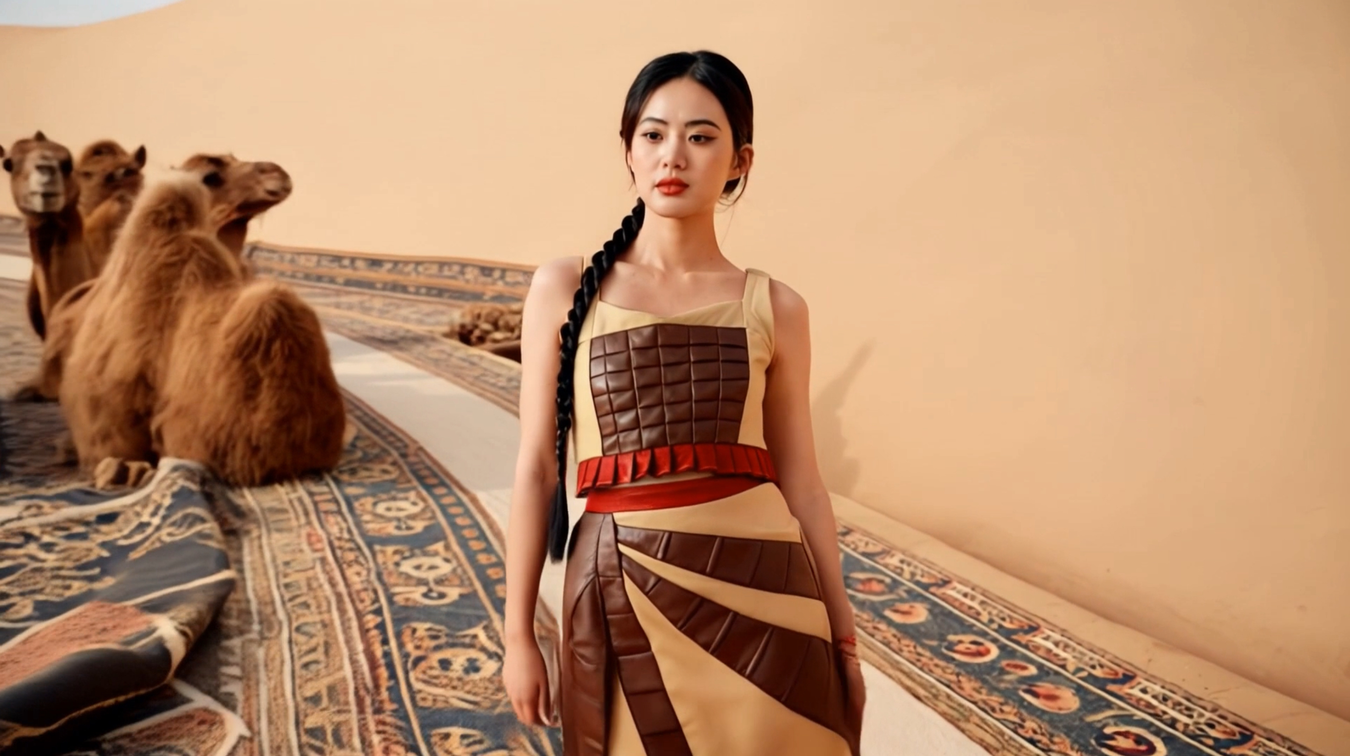 本次虚拟秀场以“溯”为主题,分为“溯源”“溯洄”“溯游”三个系列,分别聚焦文化传承、可持续时尚与现代创意设计,汇聚了119位毕业生的设计作品,集中展示了200余套数字实物成衣,全面展现新一代青年设计师对时尚的理解与实践。本次虚拟时装秀由服装学院师生组成的AI时尚团队以AI生成模型为创作引擎,通过对大量手绘效果图和成衣大片图像数据的训练,精准理解并还原服装的色彩氛围、面料质地和廓形结构,从而生成虚拟动态视频,再由AI艺术学院师生团队进行后期渲染与剪辑,实现了从草图到成衣再到虚拟时尚形象的智能创作,深度结合了现实与虚拟效果交互,呈现了AIGC融入教学改革、跨专业交流等方面的最新成果。