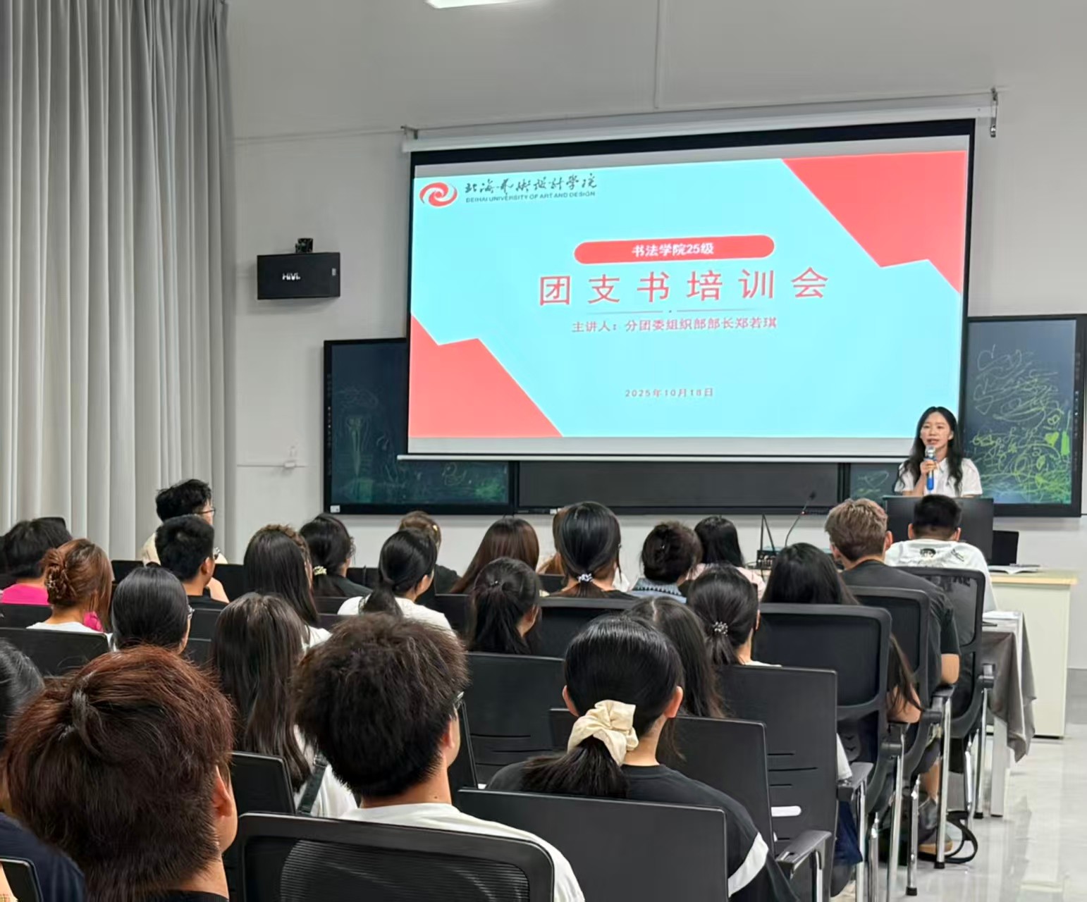为切实提升2025级团干部履职能力,规范基层团支部工作运行机制,10月18日书法学院在艺德楼507书法教研室组织召开新生团干部专题培训会。分团委负责人石建玲老师应邀出席,分团委组织部部长郑若琪同学担任主讲,2025级全体团支部书记、副书记及组织委员参加培训。