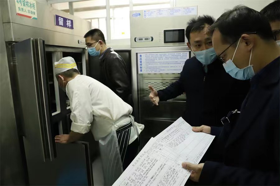 督导组查看食堂后厨设施