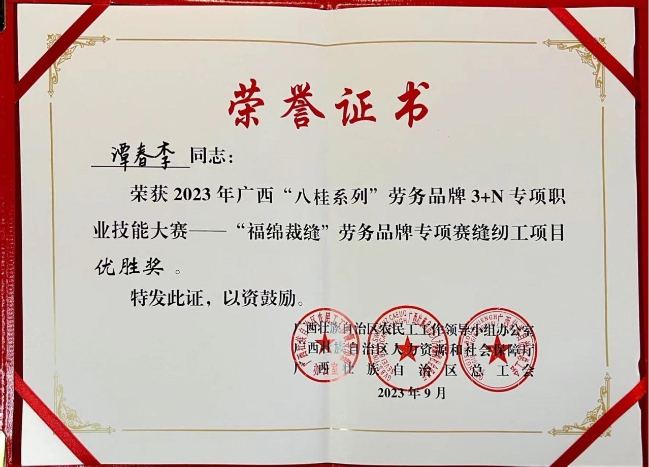 我校师生在2023年广西“八桂系列”劳务品牌3+N专项职业技能大赛——“福绵裁缝”劳务品牌专项赛获得佳绩