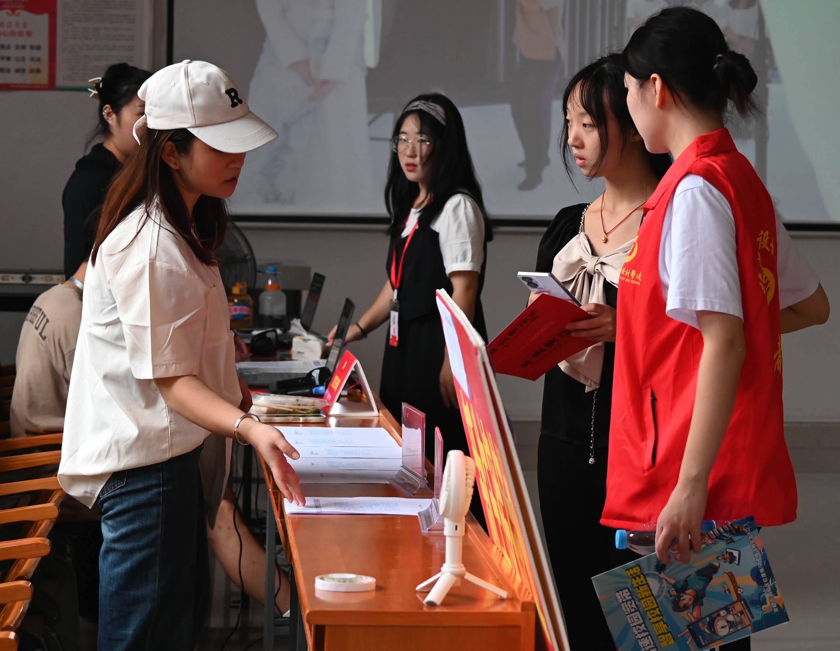 报到当天,教师党员、学生预备党员以及入党发展对象、入党积极分子新生接待志愿者早早到达迎新场地。在火车站迎新接待点,志愿者在出站口高举接站牌翘首以盼,接到新生后便热情地引导他们到乘车点乘车,过程中主动帮新生学搬运行李,提醒大家注意安全。在校内迎新接待点,志愿者引导新生按照报到流程办理入学手续,帮助新生搬运行李,志愿者为新生介绍校园环境。为了方便新生及家长快速辨识,志愿者统一穿着红色志愿服,佩戴工作牌。纵使身心疲惫、大汗淋漓,志愿者仍精神饱满,认真做好迎新工作。