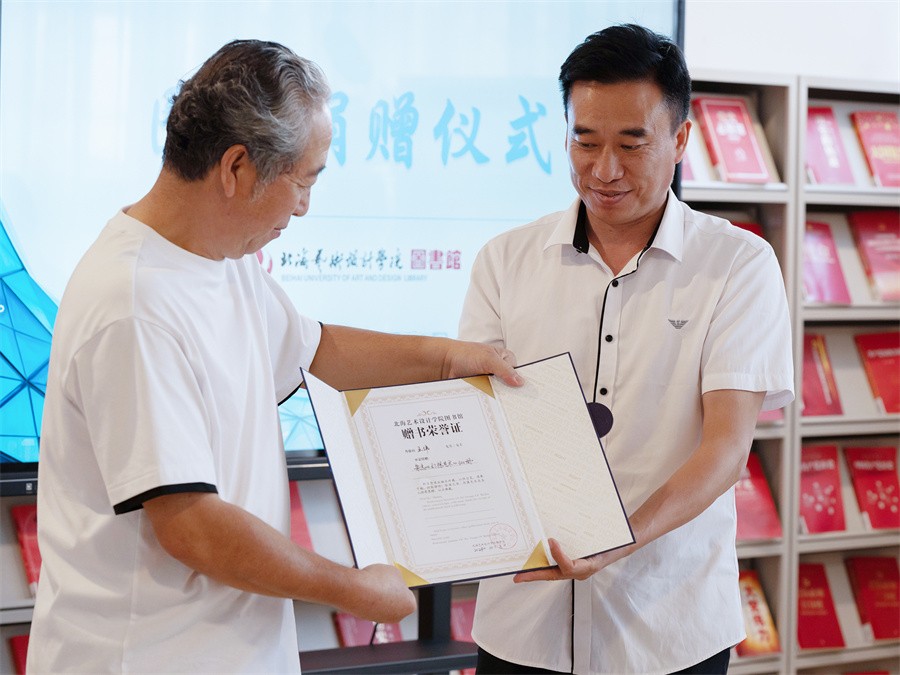 陶立阳副校长在讲话中表示,王伟教授的此次捐赠助力了图书馆馆藏建设。他鼓励广大师生充分利用图书馆资源,汲取艺术家的设计思维与创作理念,同时也建议教师在授课过程中,向学生推荐有益的图书以供阅读。他强调,尽管数字时代为大众提供了诸多便利,但也使得知识趋于碎片化,因此大家需要培养辨别与筛选的能力,将线上与线下资源相结合,以获取更丰富、更有价值的信息。