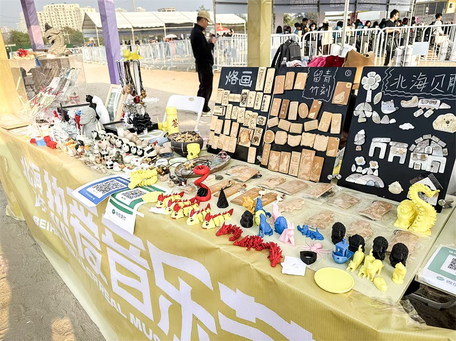 2024年12月31日至2025年1月1日,北海热爱音乐节在北海国际帆船码头举办,我校作为此次活动的文创展区参与方,设计艺术学院产品设计专业师生在现场设立了独特的非遗文创产品展位,吸引了众多游客和音乐爱好者的目光。