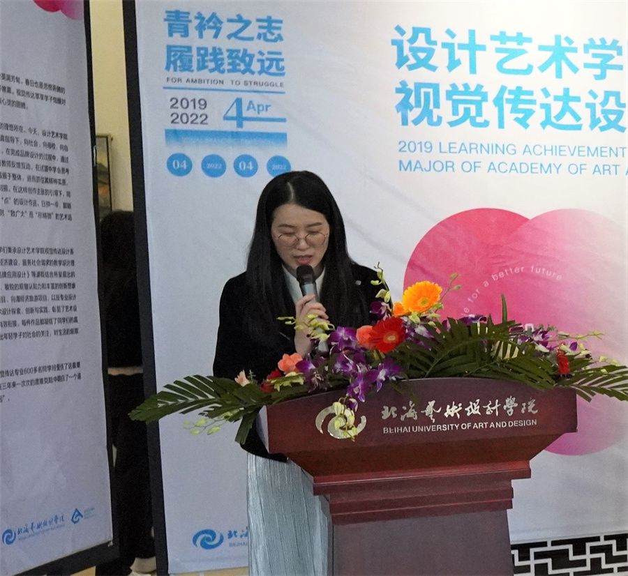 校党委副书记韦静月宣布设计艺术学院2019级视觉传达专业汇报展正式开幕。