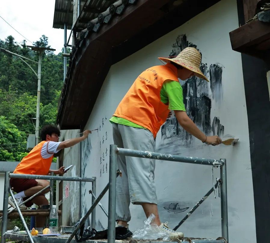 接着志愿者们开展了环境保护活动与墙绘活动,将自身的专业知识与本领运用到为人民服务之中去,通过墙体绘画装点村容村貌,用色彩勾勒出美丽乡村的完美画卷。墙绘的打造,不仅为美丽乡村增添了一道靓丽的风景线,还促进了当地旅游业的发展,为美丽乡村建设注入色彩与活力。