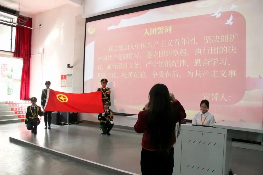 团歌悠扬响起,入团仪式正式开始。仪式宣读2025年新发展团员名单,为共青团注入新鲜血液。
